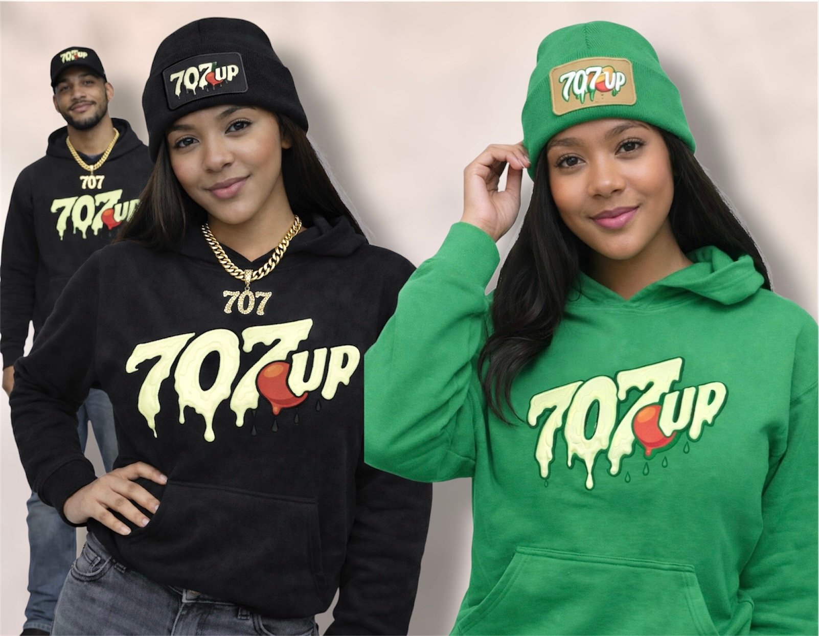 707UP on a green T-shirt for Men /green V-neck for Women... represent!