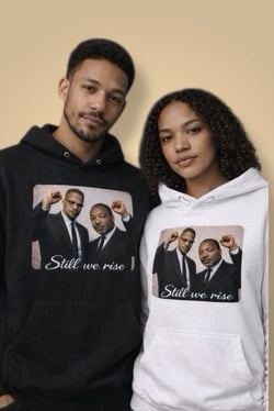 “Still We Rise” Malcolm X & Dr. Martin Luther King Jr. Hoodie A timeless tribute to strength, unity, and legacy. Available in classic black and clean white, this hoodie blends heritage imagery with modern streetwear. It’s more than fashion — it’s history you can wear.