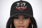 Show your Vallejo pride with this bold Vintage Vallejo “707 Certified Apache” trucker hat. This black mesh-back cap features a structured front panel with a high-contrast crest design showcasing the Vintage Vallejo High School Apache mascot, crossed axes, and the signature 707 mark. The red, white, and black emblem pops cleanly against the dark crown for a strong, streetwear-ready look.